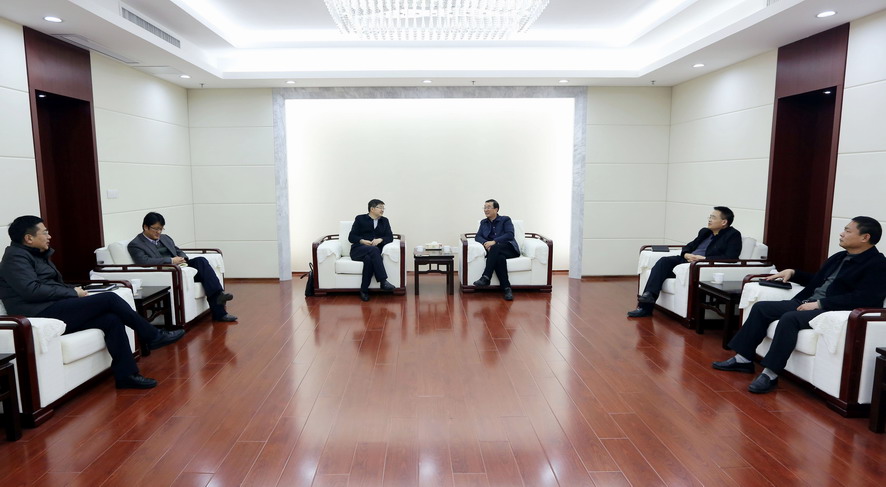 12月22日下午,集團(tuán)公司總經(jīng)理胡建明在總部會見前來拜訪的江蘇新海石化有限公司總經(jīng)理范建明一行。集團(tuán)公司副總經(jīng)理朱天松、王士華參加會見。