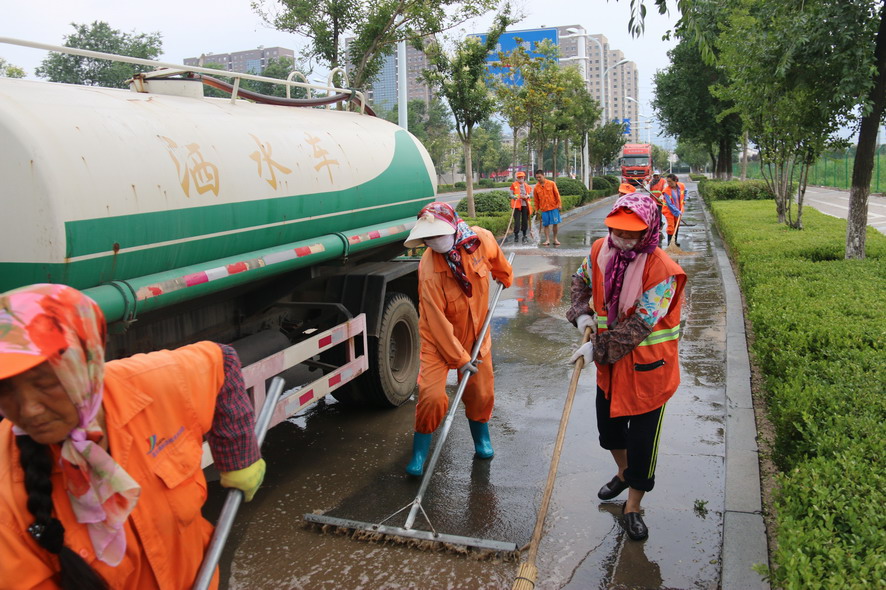 819日在火車站廣場(chǎng)及周邊路段,40多名綠化、保潔工人及灑水車、清掃車等全力保障火車站重點(diǎn)地段的環(huán)境衛(wèi)生,為過往旅客提供一個(gè)干凈整潔舒心的出行環(huán)境。據(jù)現(xiàn)場(chǎng)負(fù)責(zé)人龔本國介紹,隨著創(chuàng)衛(wèi)工作力度的進(jìn)一步加大,開發(fā)區(qū)對(duì)我們火車站廣場(chǎng)及周邊路段的環(huán)境衛(wèi)生提出了更高的要求,我們對(duì)會(huì)泉路商戶門前的綠化進(jìn)行了補(bǔ)植,種植紅葉石楠等苗木600多平方,每天專門安排一輛灑水車對(duì)火車站廣場(chǎng)及周邊路段進(jìn)行巡回清洗清掃,確保路面干凈無塵土,對(duì)廣場(chǎng)站臺(tái)、護(hù)欄、果皮箱、路燈桿、花壇進(jìn)行清理擦洗,對(duì)下水道進(jìn)行清掏,蓋板更換維修。為確保創(chuàng)衛(wèi)工作任務(wù)高標(biāo)準(zhǔn)高質(zhì)量完成,連日來,綠化養(yǎng)護(hù)、環(huán)衛(wèi)保潔工人天天早上6點(diǎn)上班,到晚上10點(diǎn)下班,中午吃飯休息只有一個(gè)小時(shí),每天工作10多個(gè)小時(shí),為創(chuàng)衛(wèi)工作做了很多實(shí)實(shí)在在的事情,他們真的很不易,很辛苦,只因有了他們的辛勤勞動(dòng)、無私奉獻(xiàn),城市環(huán)境衛(wèi)生才會(huì)越來越好。