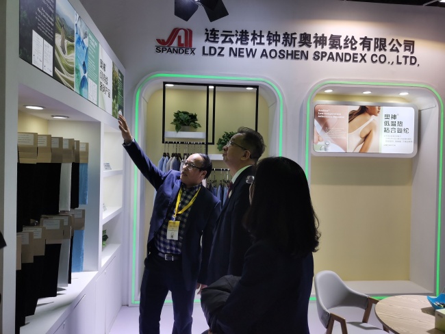 3月6日,連云港杜鐘新奧神氨綸有限公司應(yīng)邀參加2024中國國際紡織紗線(春夏)展覽會。公司攜三款低碳環(huán)保新產(chǎn)品閃亮登場,與本次紗線展“綠色、循環(huán)、低碳”的理念完美契合。工信部消費品工業(yè)司司長何亞瓊一行親臨公司展位指導(dǎo)交流,中國化學(xué)纖維工業(yè)協(xié)會副秘書長靳高嶺等領(lǐng)導(dǎo)陪同。