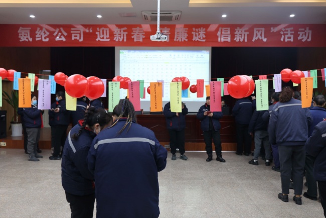 2月7日,新春佳節(jié)來臨之際,杜鐘氨綸公司紀委組織“迎新春 猜廉謎 倡新風(fēng)”活動。職工歡聚一堂,通過謎語廉潔相結(jié)合的形式共同迎接龍年。