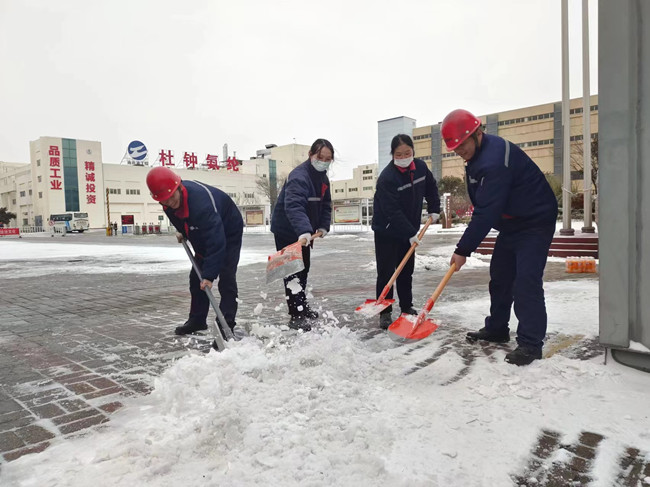 2月1日凌晨一場雪如約而至,杜鐘氨綸公司內(nèi)出現(xiàn)“忽如一夜雪花來”的場景,給公司披上銀裝,伴隨著凜冽的寒風(fēng),氣溫驟降,同時也給上班的員工帶來了安全隱患。