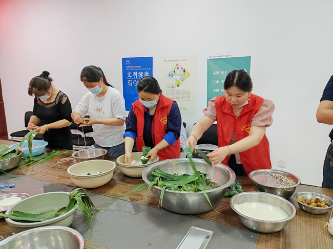 活動(dòng)中,公司員工與社區(qū)居民共同開展包粽子比賽,期間公司領(lǐng)導(dǎo)詢問了社區(qū)工作情況,雙方就新時(shí)代黨建引領(lǐng)下的社企共建工作進(jìn)行了深入交談并為社區(qū)空巢老人和困難群眾送上了粽子、大米、牛奶、食用油等慰問品。