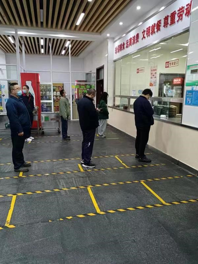 公司迅速統(tǒng)計摸排統(tǒng)計員工基本情況,全面把握員工是否在崗、健康狀況、小區(qū)封控情況、在崗員工是否需要被褥等生活用品等信息,為實施封閉管理提供數據支撐。同時,全面篩查員工的隔離情況,及時上報集團與開發(fā)區(qū)防控部門,密切跟蹤隔離員工狀態(tài),開展心理疏導,提供必要的信息支持。下發(fā)《疫情防控指導手冊》,出臺《氨綸公司疫情防控期間宿舍管理制度》《浴室管理制度》《疫情防控期間食堂管理制度》等,為駐廠員工提供有效后勤保障,確保生產經營順利開展。
