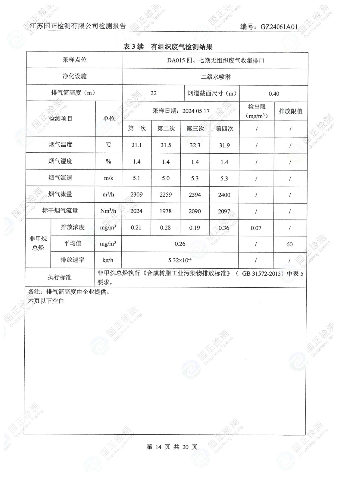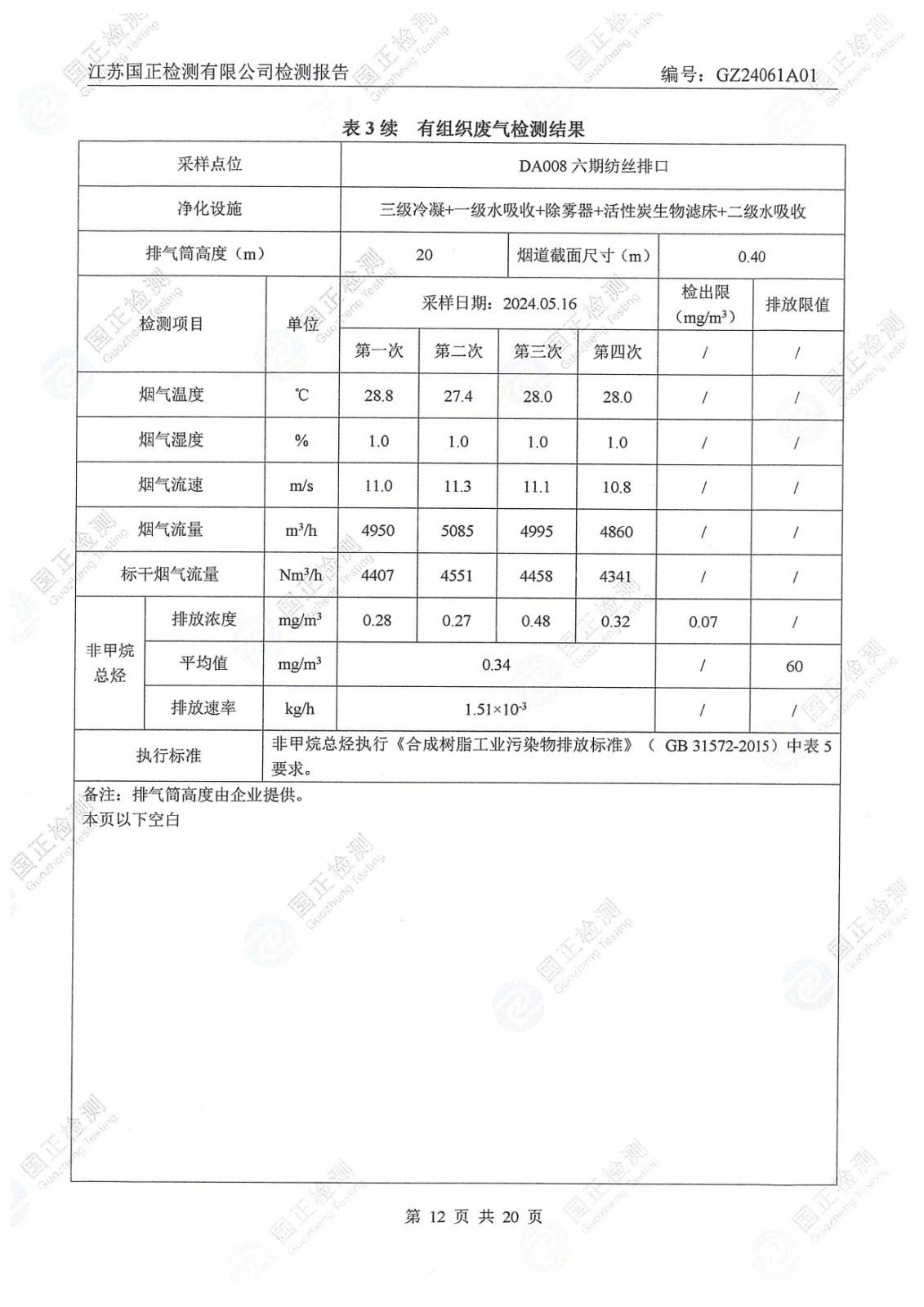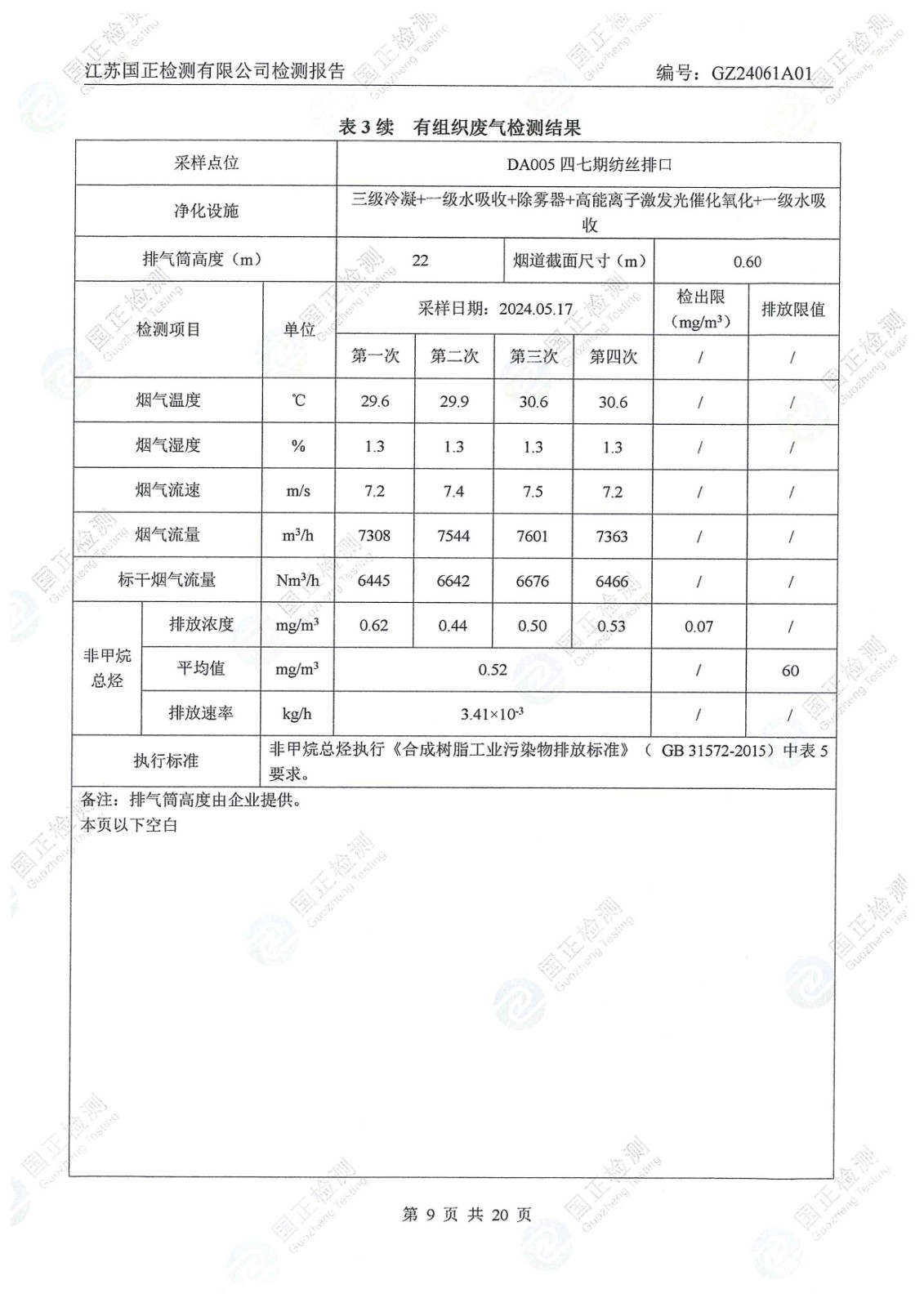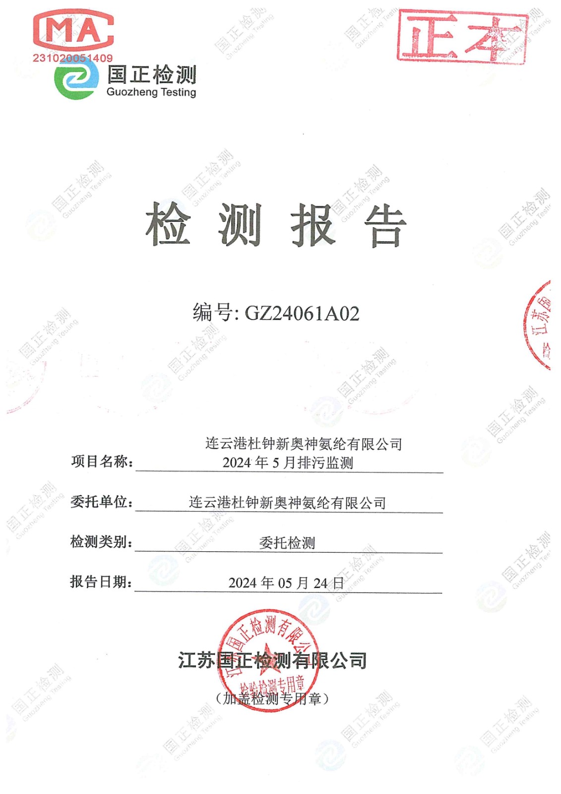 杜鐘氨綸2024年5月排污檢測報告