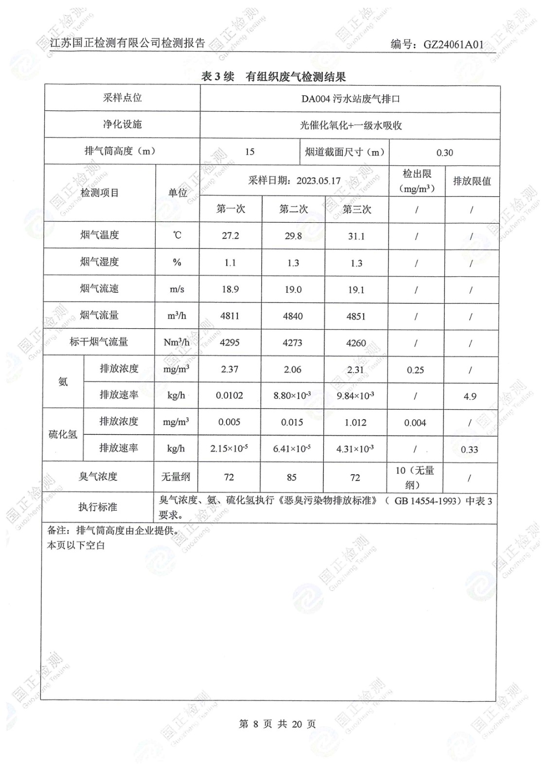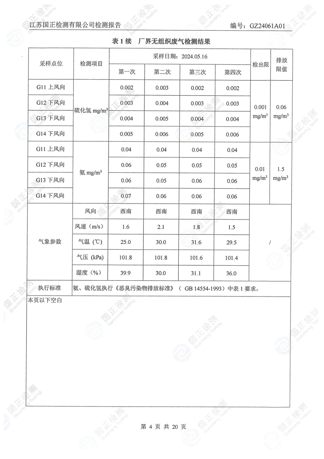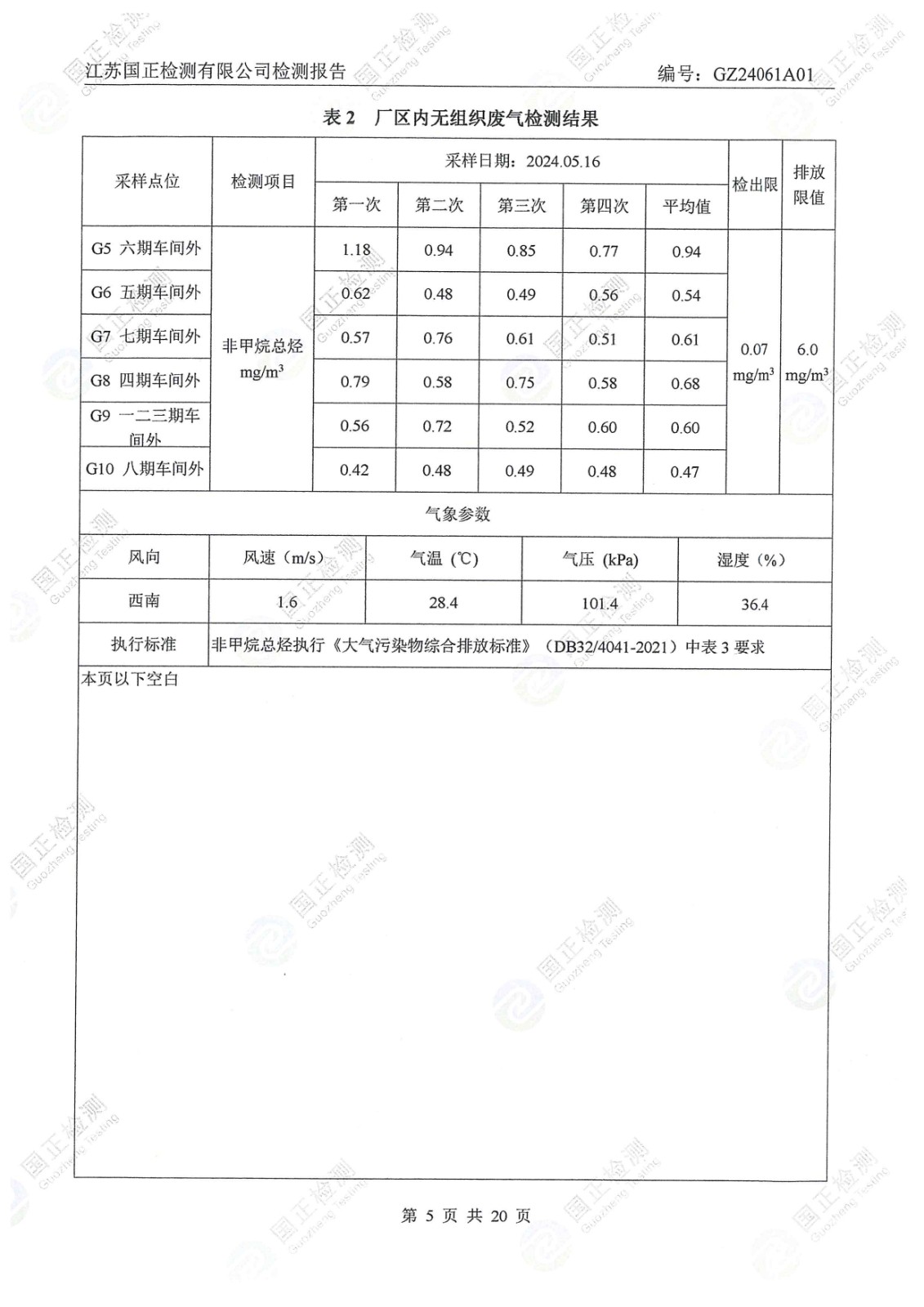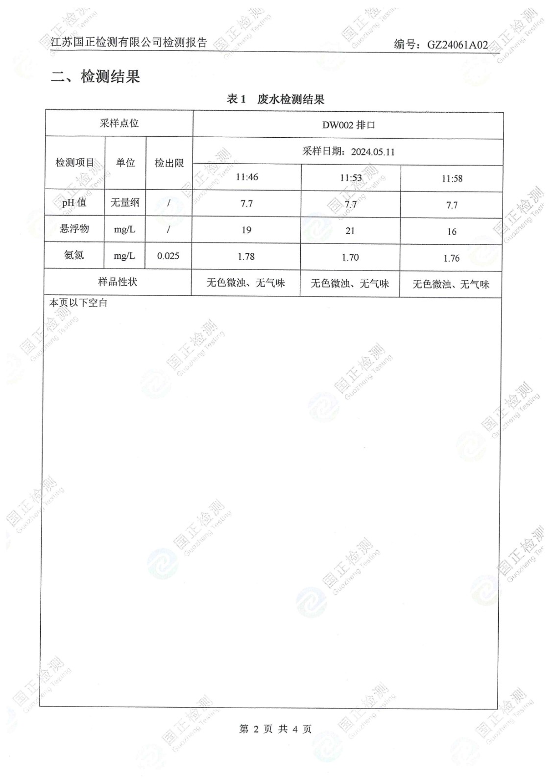 杜鐘氨綸2024年5月排污檢測報告