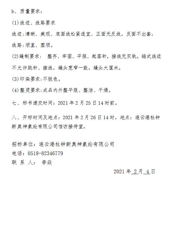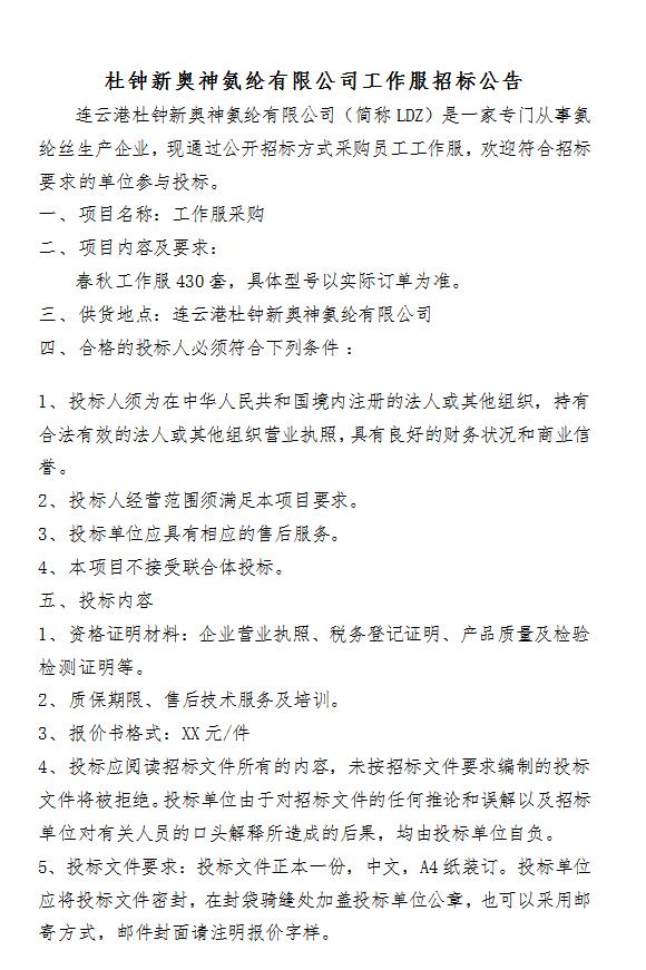 工作服招標公告(2021-2)