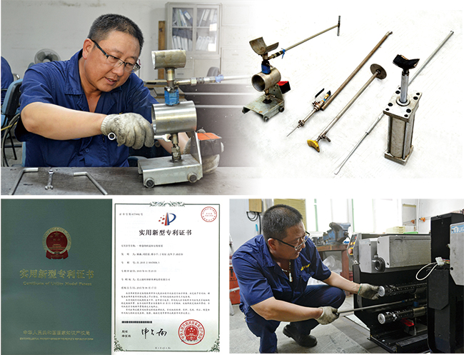 于來好,1992年進(jìn)廠,已然是一位有著24年工作經(jīng)歷的老師傅,但在發(fā)明創(chuàng)造方面一點(diǎn)都不輸給年輕同志,憑借著一股不服輸?shù)母蓜藕桶僬鄄粨系臐撔你@研,利用業(yè)余時間搞技改和鼓搗他的“小發(fā)明”,已經(jīng)成為他的習(xí)慣。在同事的眼中,于師傅是個有心人,也是個愛琢磨的人,工作中哪里有問題,什么工具還可以改進(jìn),怎么做可以提高效率他總是能第一個發(fā)現(xiàn),而且能第一個想辦法解決。在長期的維修實(shí)踐中,他利用下邊腳料和損壞的零件,巧妙的組合成既方便又實(shí)用的特殊工具,他的這些“小發(fā)明”在生產(chǎn)實(shí)際中往往都能起到“大作用”。比如,他用破損的鉆頭,打磨后就是堅(jiān)硬的鏨子;斷裂的改錐和內(nèi)六角相互焊接,就是一把可以放在衣兜里的多途工具;利用損壞更換下來的氣缸,做成專用的卷繞機(jī)維修工具,為紡絲車間開展自主維修提供極大便利,生產(chǎn)效率大大提升。經(jīng)他改造的小工具就有十幾項(xiàng),其中有兩項(xiàng)獲得了實(shí)用新型專利。