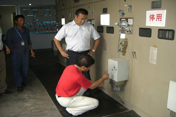 8月31日,公司領導帶領相關(guān)人員深入基層單位進行安全檢查,并現(xiàn)場查處安全隱患。圖為黨委書記、總經(jīng)理范益寶在臺南供電所督導安全生產(chǎn)工作。(朱兵、徐磊)