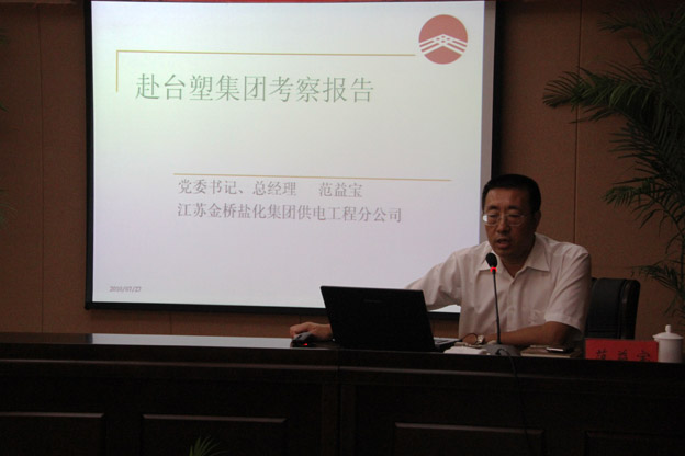 727下午,公司在淮鹽大酒店會議室召開學(xué)臺塑專題報告會。公司全體管理人員及部分職工代表近90人參加了報告會。公司黨委書記、總經(jīng)理范益寶作了考察臺塑專題報告,報告會由公司黨委副書記、副總經(jīng)理陳雨華主持。