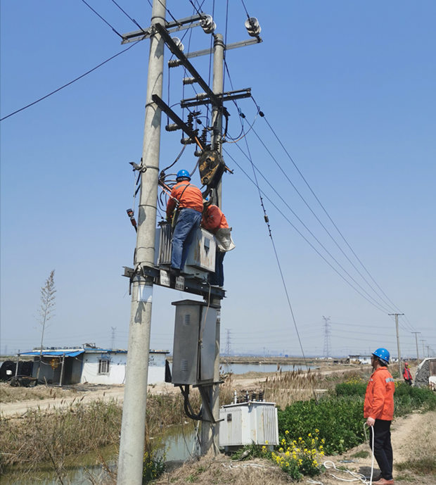 近年來,淡水養(yǎng)殖不斷擴(kuò)大高密度養(yǎng)殖規(guī)模,充氧設(shè)備逐漸增加,夏季高溫臺變用電負(fù)荷大增,養(yǎng)殖區(qū)部分變壓器不堪重負(fù)。為了保障廣大養(yǎng)殖用戶生產(chǎn)生活用電,確保供電設(shè)備經(jīng)得起高溫負(fù)荷的“烤”驗。當(dāng)天上午八點半,在辦理好相關(guān)停電手續(xù),停電、驗電、安裝接地線、安全交底等各項準(zhǔn)備工作的基礎(chǔ)上,在組長余榮欣的統(tǒng)一指揮下全組人員克服困難開始拆除舊變壓器,吊離變壓器,安裝新變壓器……經(jīng)過近5個小時奮戰(zhàn),順利完成2處變壓器更換安裝工作任務(wù),提前做好迎峰度夏“保衛(wèi)”工作。