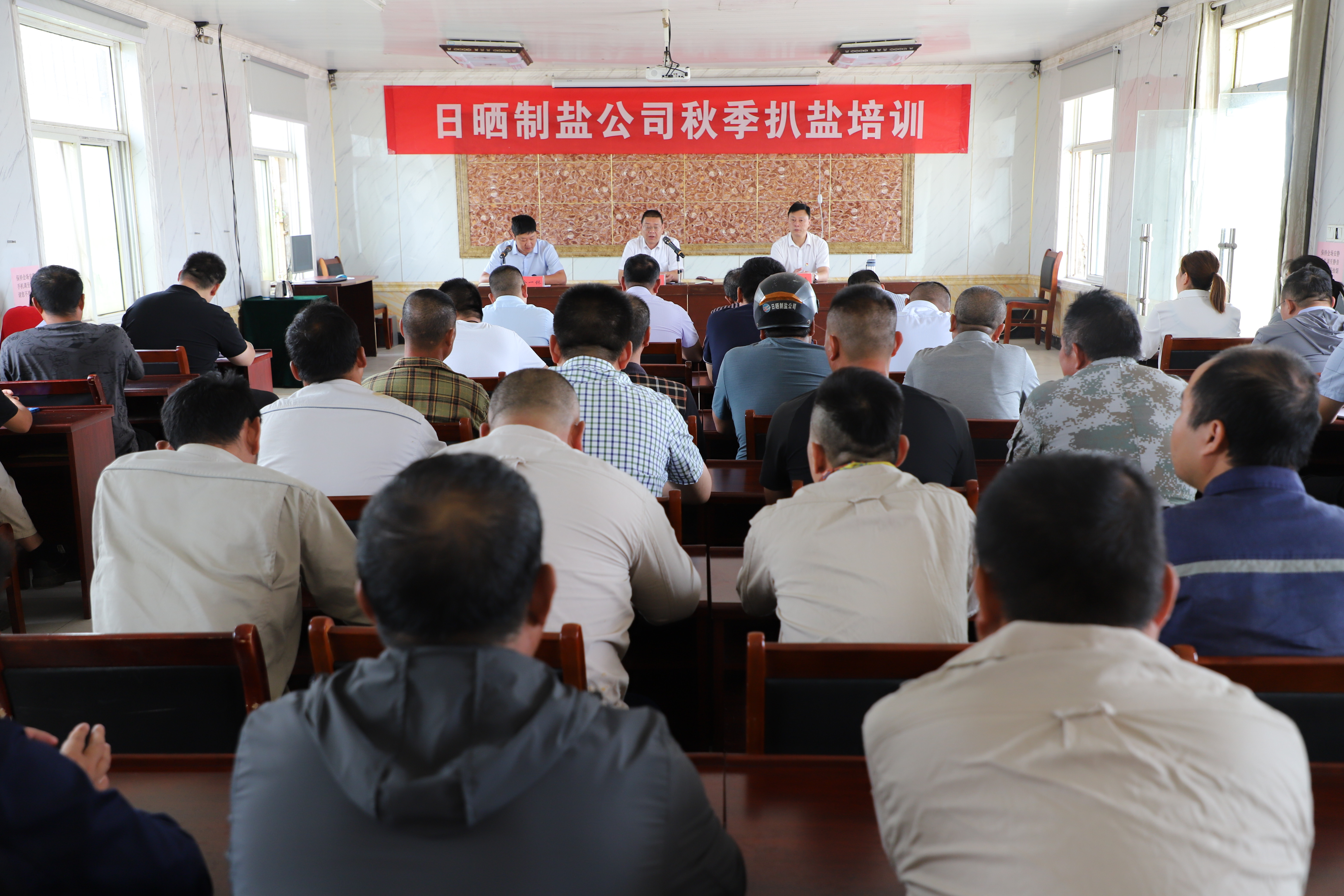 為貫徹落實(shí)“安全第一,預(yù)防為主,綜合治理"的安全生產(chǎn)方針,提高員工安全意識(shí)和安全操作技能,9月15日上午,公司開展扒鹽培訓(xùn),公司黨委書記、董事長(zhǎng)孫政權(quán)、總經(jīng)理吳衛(wèi)平出席,常務(wù)副總經(jīng)理徐一林主持會(huì)議,日曬制鹽管理人員、后勤人員及公司帶班人員參加培訓(xùn)。