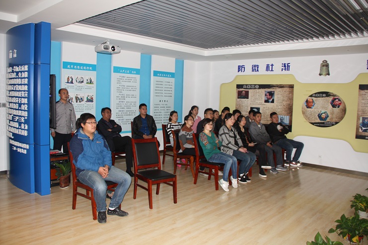 在廉政教育室,解說員帶領(lǐng)大家一起參觀廉政教育室,學(xué)習(xí)新版《中國共產(chǎn)黨廉潔自律準(zhǔn)則》、《中國共產(chǎn)黨紀(jì)律處分條例》,并觀看了警示教育片《四風(fēng)之害》。十月中旬正式揭牌啟用的廉政教育室是灌西黨風(fēng)廉政建設(shè)的閃亮名片,以期通過展覽宣教,使全公司黨員干部以案為戒,以廉為榮,自覺筑牢拒腐防變的思想道德防線;10月18日,中共中央印發(fā)了新修訂的《中國共產(chǎn)黨廉潔自律準(zhǔn)則》和《中國共產(chǎn)黨紀(jì)律處分條例》,紀(jì)委迅速組織學(xué)習(xí)掌握《準(zhǔn)則》和《條例》,把學(xué)習(xí)貫徹與具體工作實際結(jié)合起來,做到內(nèi)化于心、外化于行,堅持高標(biāo)準(zhǔn),守住底線;《四風(fēng)之害》通過大量反面事例、詳盡的數(shù)據(jù)對比,直觀闡明了形式主義、官僚主義、享樂主義和奢靡之風(fēng)的危害。截至目前,已有近80名黨員接受了廉政警示教育。