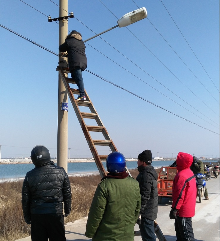 為增添節(jié)日氣氛,亮化場(chǎng)區(qū),機(jī)械設(shè)備服務(wù)中心接到場(chǎng)區(qū)及日曬鹽道路路燈維修任務(wù)后,班子成員高度重視,認(rèn)真組織,積極籌備維修配件,并結(jié)合天氣形勢(shì),對(duì)需要修理的60盞路燈,采取分段實(shí)施的辦法,于1月25日開始,他們本著安全第一的原則,搶時(shí)間爭(zhēng)速度,對(duì)日曬鹽道路路燈展開維修工作,繼而對(duì)場(chǎng)區(qū)中二圩街道路燈進(jìn)行維修,職工們不畏嚴(yán)寒,加班加點(diǎn),到1月31日將全部路燈維修結(jié)束。(圖為修理現(xiàn)場(chǎng))