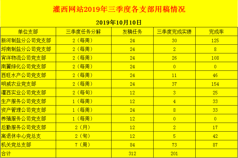 灌西網(wǎng)站2019年三季度各支部用稿情況