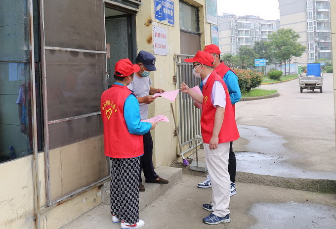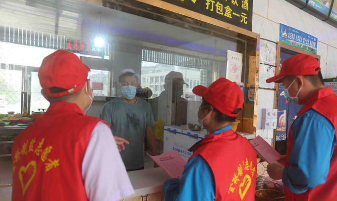 組織志愿者到板橋社區(qū)內(nèi)的飯店、居民區(qū)等地分發(fā)《疫情防控倡議書(shū)》和疫情防控知識(shí)手冊(cè)