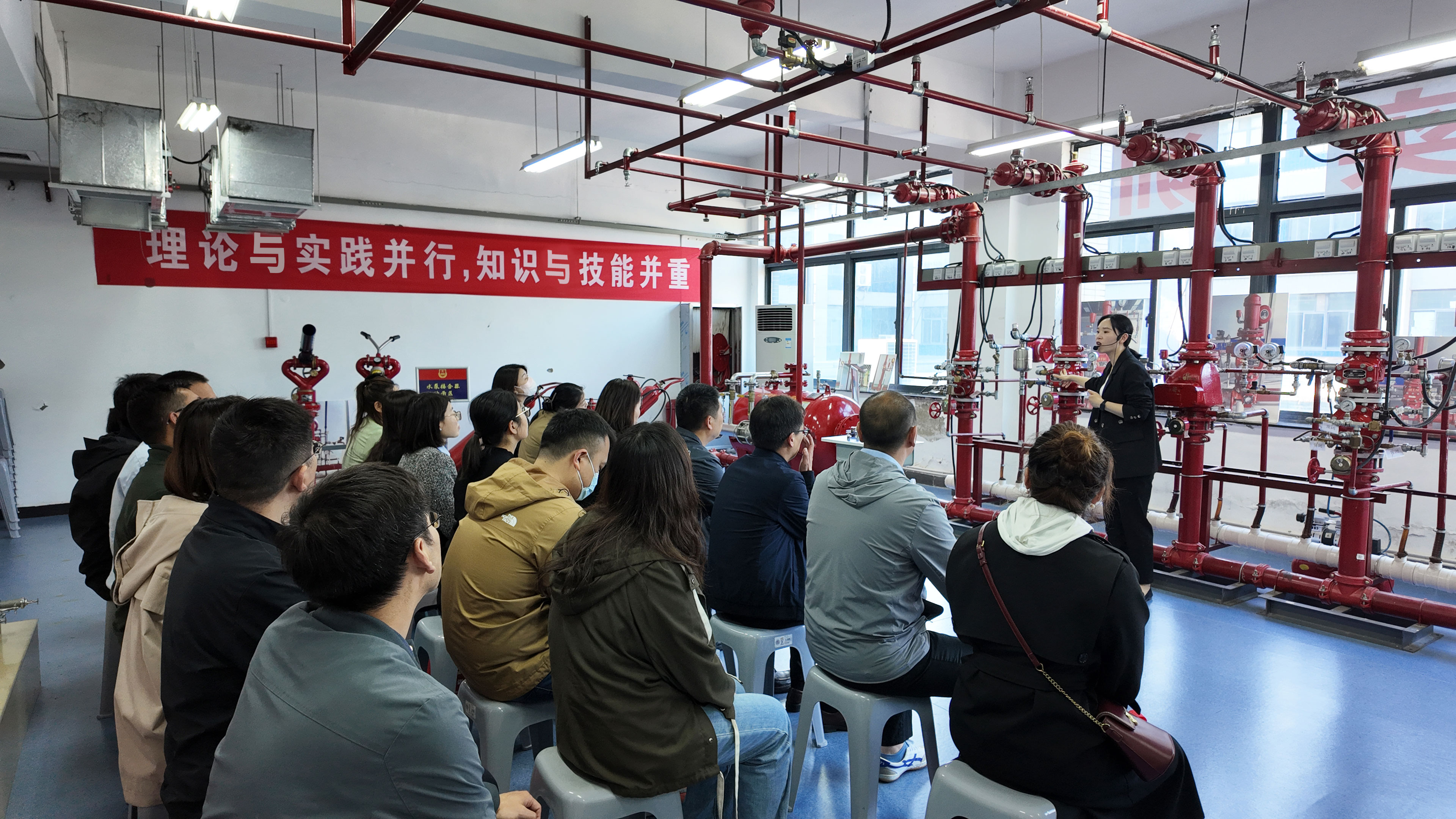 培訓中,具有注冊消防工程師資質(zhì)的培訓老師運用理論授課、實地講解、多媒體互動等多種教學方式,使參訓職工快速了解并掌握建筑常見消防設施及消防器材的動作原理和操作技能。“授人以魚,不如授人以漁?!痹谂嘤栠^程中,老師利用學校獨特的現(xiàn)場教學場景,針對九小場所“三合一”現(xiàn)象、違規(guī)違章動火作業(yè)、常見電氣火災隱患等實際問題進行了深入剖析和講解,并重點強調(diào)了日常消防防范管理工作的程序和重點,令大家受益匪淺。