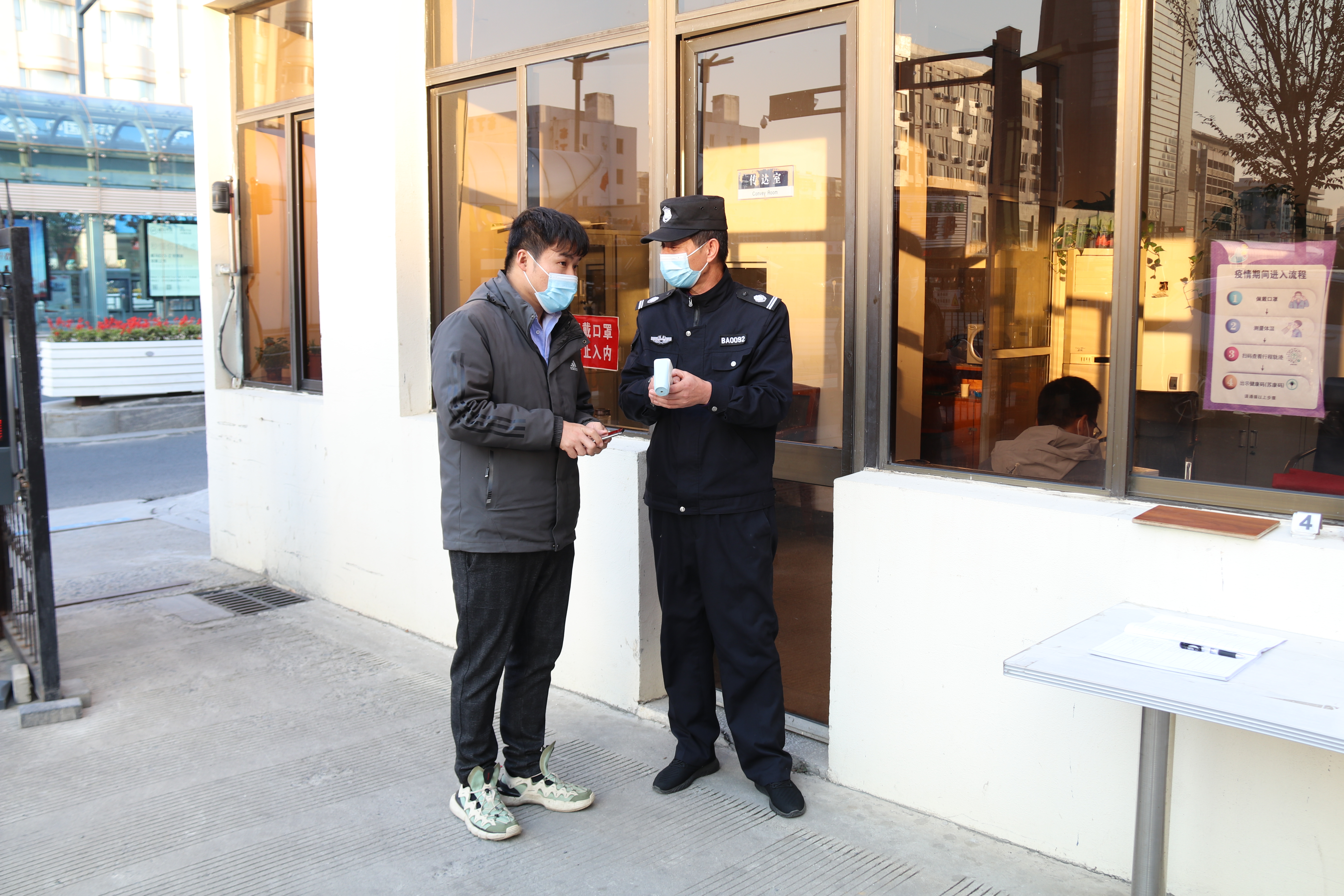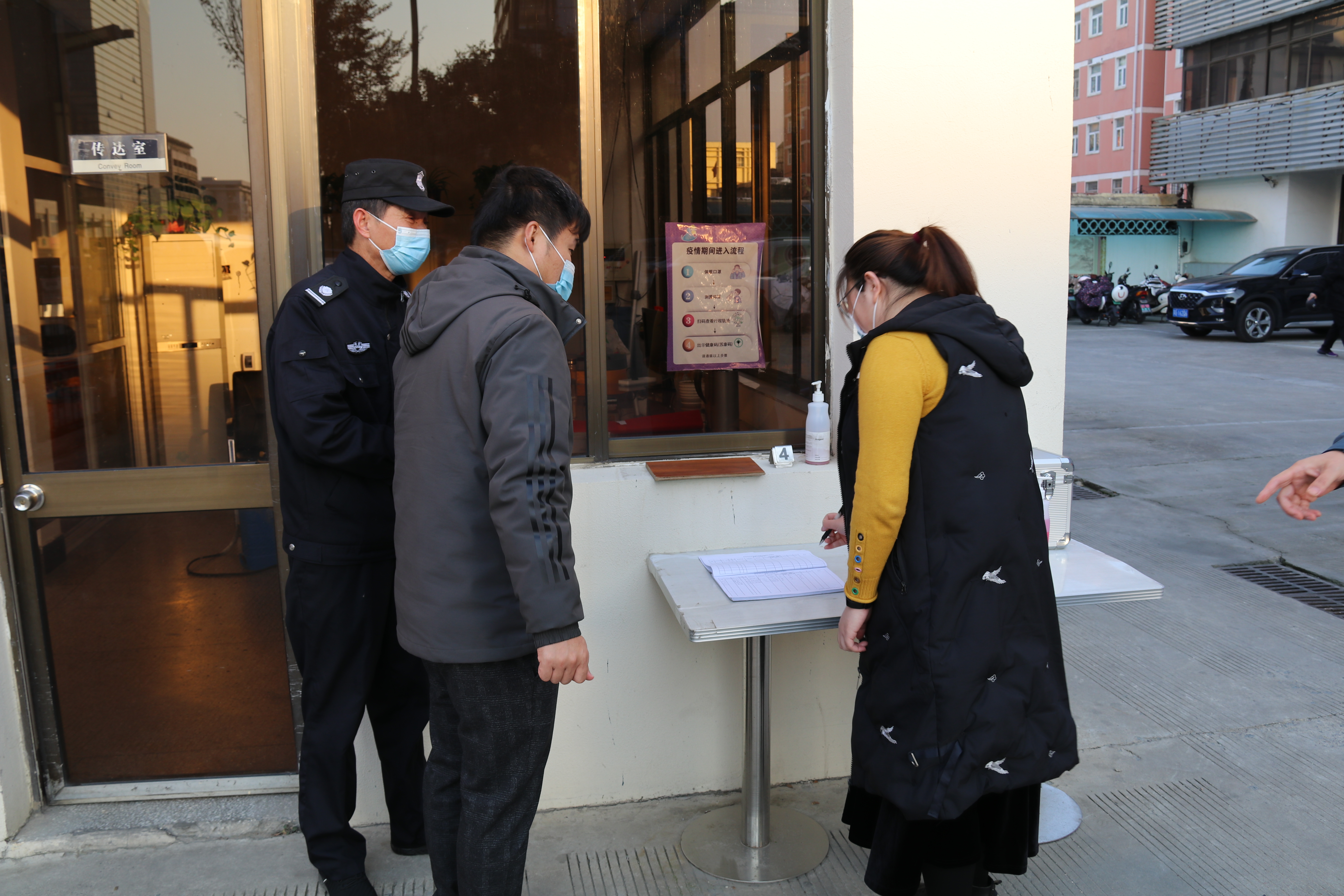 應急小組成員對體溫異常者進行健康碼、行程碼檢查,并對14天內所經(jīng)地方進行排查登記。