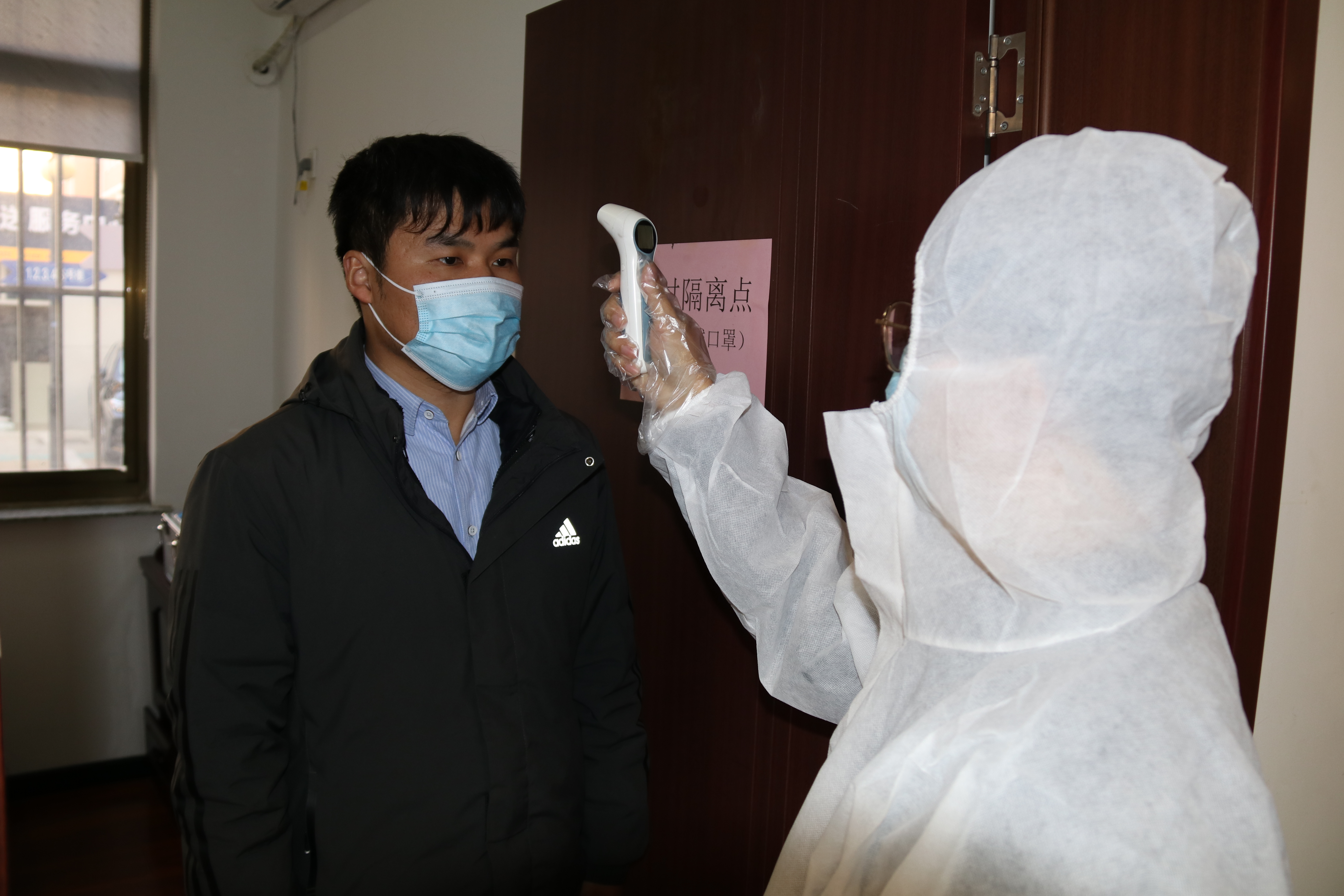 十分鐘后再次確認體溫異常,處置組成員向疫情防控領導小組報告情況,經(jīng)小組領導批準,與集團、屬地社區(qū)報備后,等待120救護車接診。