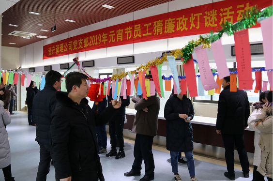 為弘揚傳統(tǒng)文化,豐富員工文化生活,營造文明和諧、健康向上的文化氛圍,讓公司員工在體驗文化魅力的過程中度過一個溫馨、愉悅、祥和的元宵佳節(jié)。219日,資產(chǎn)管理公司黨支部以“樹文明新風(fēng)、倡廉潔文化”為主題,在五樓活動室舉辦2019年元宵節(jié)猜廉政燈謎活動,大家一起開動腦筋,在歡度佳節(jié)的同時,“觸摸”廉政文化、接受廉潔教育,感受著“廉政燈謎”帶來的一股浩然清風(fēng)。