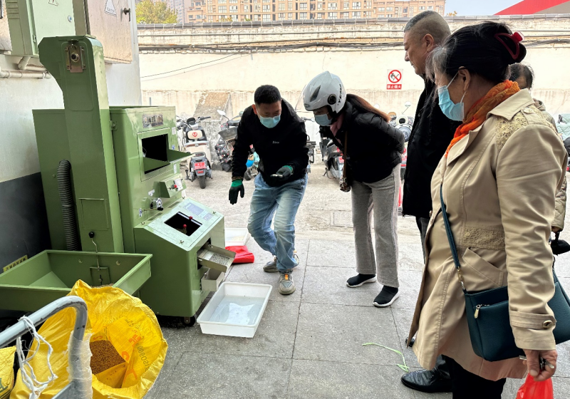 近日,米業(yè)營銷中心工作人員在巨龍路菜市場進行今年新米的現(xiàn)場脫殼,吸引了許多市民的關(guān)注與購買,進一步提高了鹽田玉品牌的知名度。同時,為鹽田玉線上線下的“雙11”優(yōu)惠活動起到了很好的宣傳作用。(耿麗園)