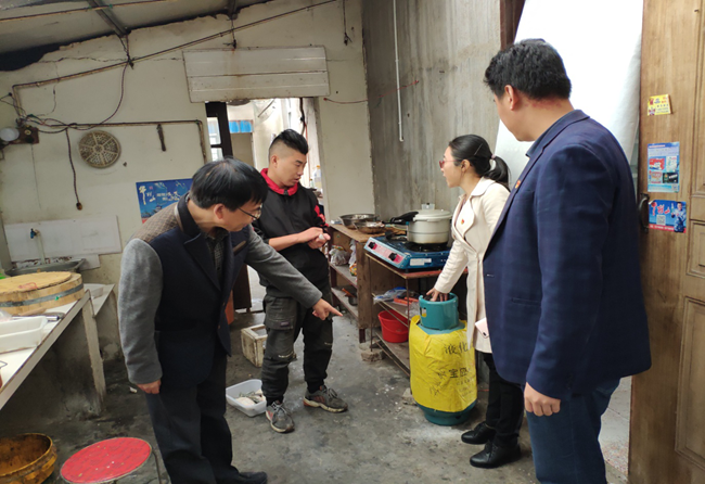 20191014日上午,服務(wù)中心聯(lián)合社區(qū)工作人員對轄區(qū)餐飲店進行液化燃氣安全專項檢查,仔細檢查液化氣鋼瓶、管道、減壓閥及燃氣灶安全使用情況,要求從業(yè)人員一定要按照規(guī)定操作流程正確使用燃氣設(shè)備,并告知他們對銹蝕、過期、老化的燃氣設(shè)備部件必須及時更新更換,以確保用氣的安全。(徐永平)
