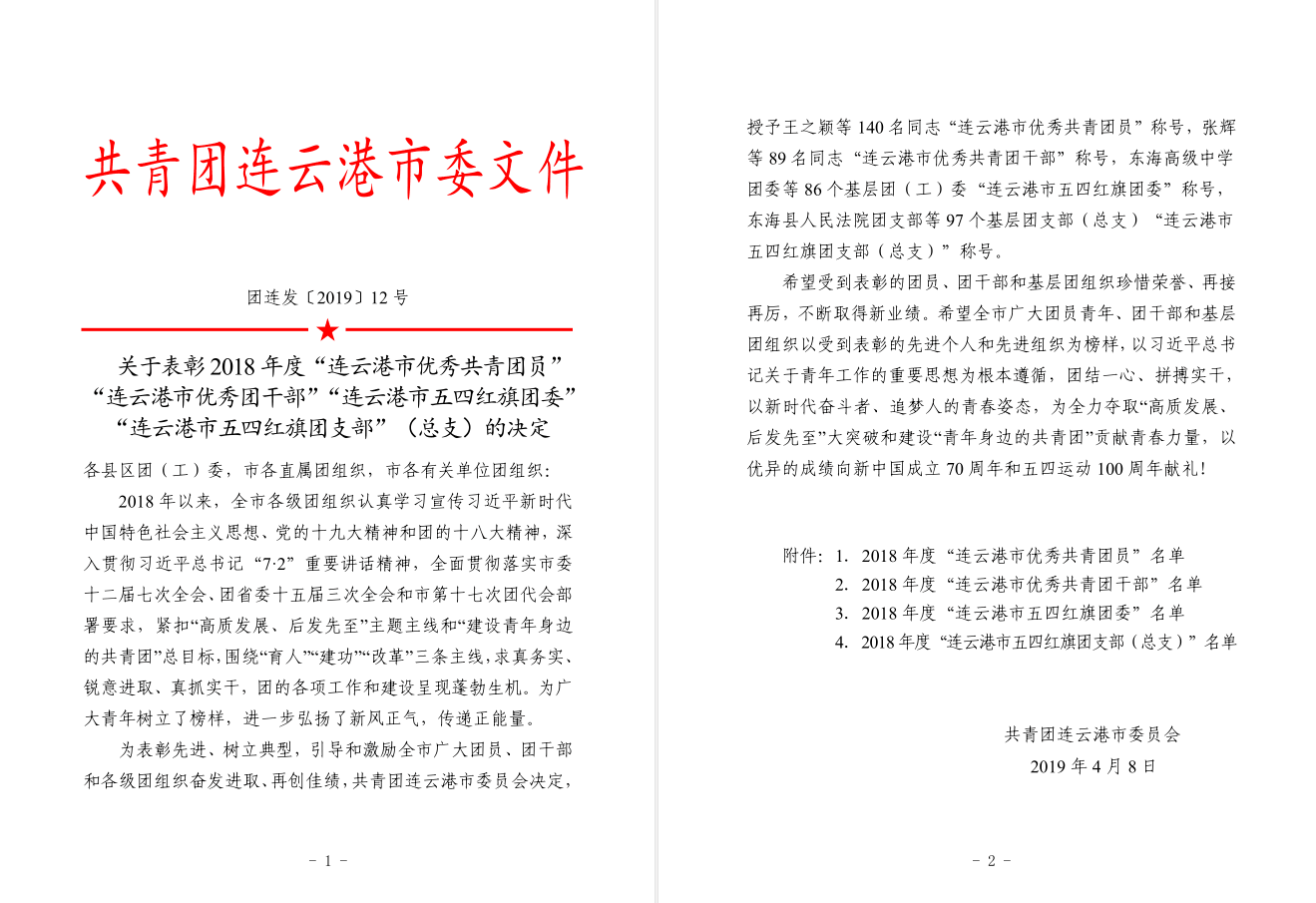 近日,共青團(tuán)連云港市委員會(huì)公布了2018年度“連云港市優(yōu)秀共青團(tuán)員”“連云港市優(yōu)秀團(tuán)干部”“連云港市五四紅旗團(tuán)委”“連云港市五四紅旗團(tuán)支部”(總支)名單,我公司員工李筠涵榜上有名,被授予“連云港市優(yōu)秀共青團(tuán)員”稱號(hào)。