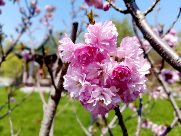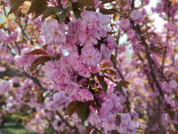 隨著梅花、迎春花、玉蘭花、杏花桃花的陸續(xù)謝幕,海棠花們開始華麗登場(chǎng)。有著藍(lán)天白云的映襯,明媚陽光照耀下的海棠花千嬌百媚,一團(tuán)團(tuán),一簇簇,你挨著我,我擁著你,粉粉嫩嫩,不正像走出病毒霧霾,露出久違笑容的人們的笑臉嗎?