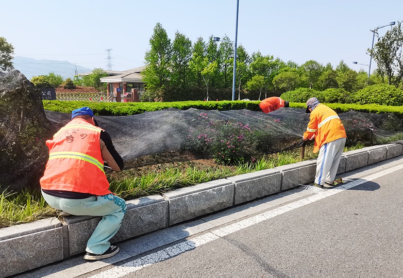 五一期間現(xiàn)場一片繁忙景象。養(yǎng)護(hù)工人們采取錯峰作業(yè),避開交通高峰,手持高壓水槍 ,對轄區(qū)東方大道、匯晶路、顧圩路兩側(cè)新栽植的苗木進(jìn)行精準(zhǔn)澆灌,確保新栽苗木存活率;東方大道養(yǎng)護(hù)班在孫班長的帶領(lǐng)下,對東方大道中央隔離帶內(nèi)進(jìn)行補植麥冬,采取覆蓋遮陽網(wǎng)等措施,以減少水分蒸發(fā)和避免陽光灼傷。同時充分利用雨后土壤松軟,組織工人對轄區(qū)綠化帶內(nèi)的雜草、雜樹進(jìn)行清除。