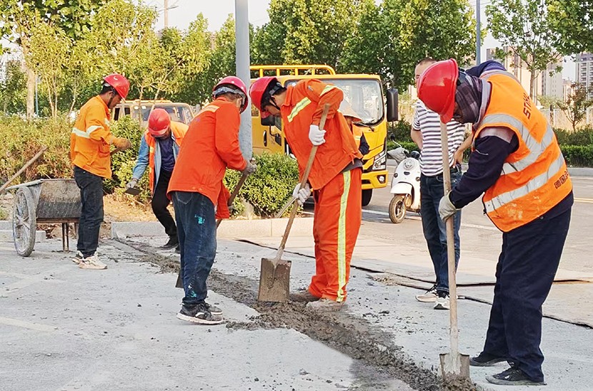 節(jié)日期間全面推進(jìn)轄區(qū)道路改造、設(shè)施維護(hù)等重點工程,以實干為節(jié)日添彩。市政維修班組成員對開發(fā)區(qū)黃海大道主干道公安分局南門進(jìn)行道路開道口作業(yè),同步推進(jìn)路基平整,現(xiàn)澆混凝土墊層等工序,為后續(xù)鋪設(shè)瀝青做好準(zhǔn)備;設(shè)備維護(hù)班班組人員彎腰揮汗,搶抓工期,對玉竹路、環(huán)湖路道路全線3.5公里路牙石涂刷黃色反光漆,確保工程能在節(jié)后順利通過驗收;為應(yīng)對54日重大工程項目開標(biāo),投標(biāo)攻堅小組成員主動放棄休假,晝夜奮戰(zhàn),全力以赴完善投標(biāo)文件,確保以最優(yōu)方案參與競標(biāo)。