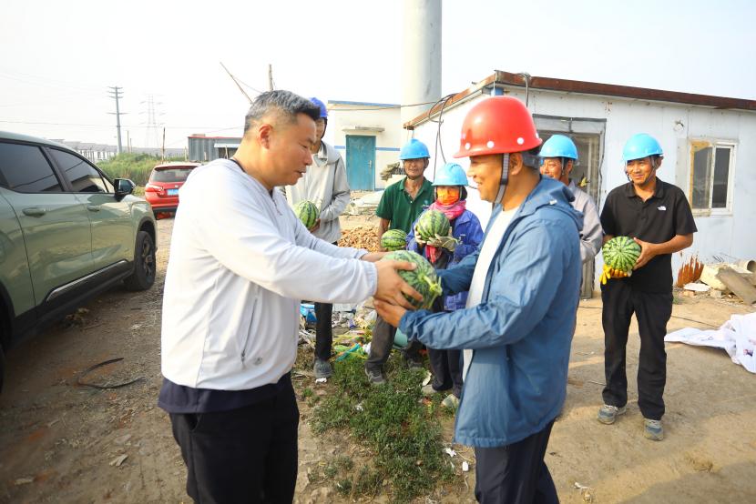 “施工現(xiàn)場送西瓜啦!”隨著夏日高溫持續(xù)攀升,為全力做好高溫天氣下職工防暑降溫工作,切實(shí)保障職工安全健康權(quán)益,自520日起,臺北投資公司工會精心策劃并開展“夏送清涼”主題活動。公司工會深入工程施工現(xiàn)場,將甘甜多汁的西瓜送到堅守在高溫崗位的職工手中,為他們送去陣陣清涼,這一暖心舉措收獲職工們紛紛點(diǎn)贊。