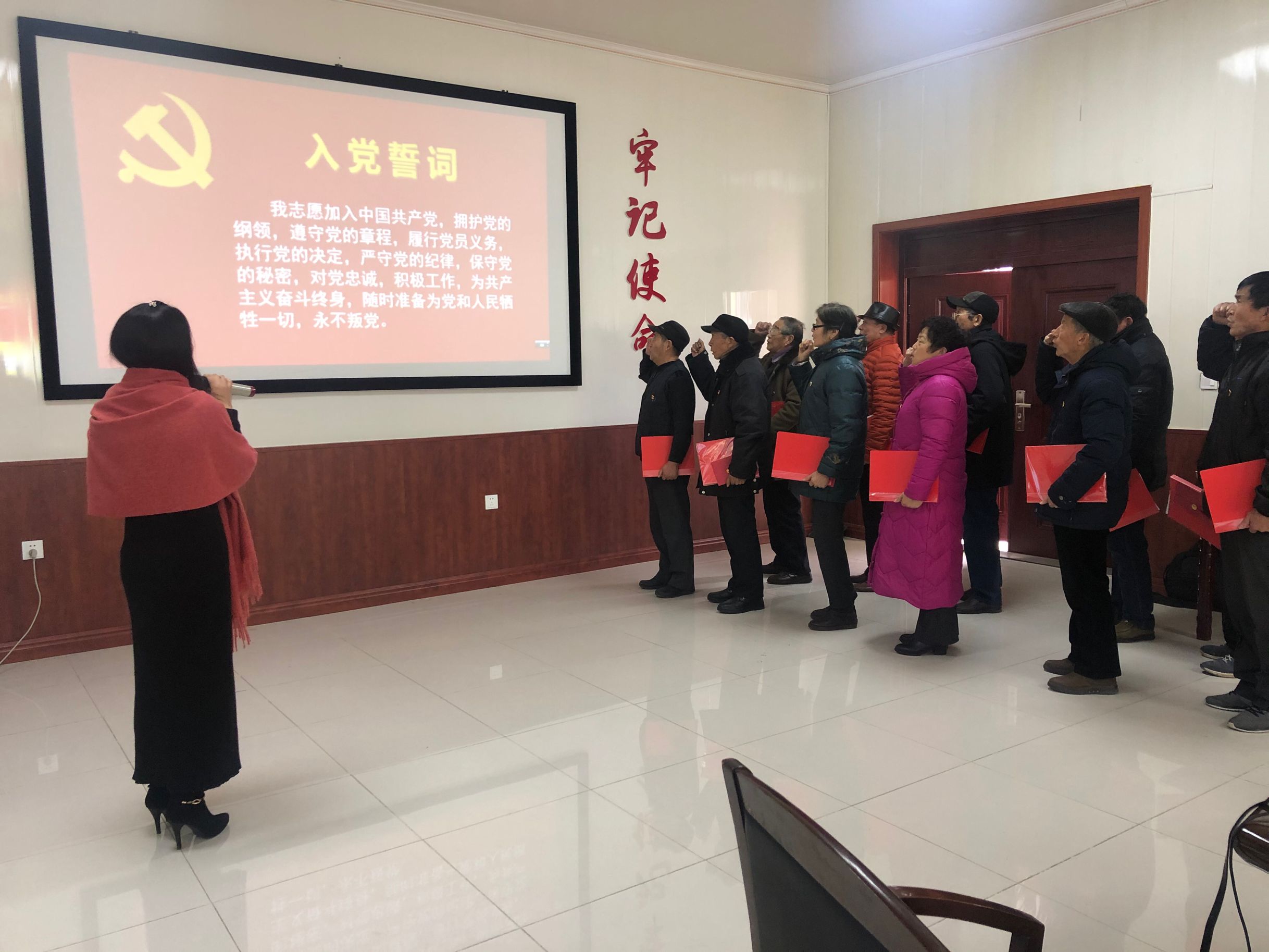 老黨員同志們站在鮮紅的的黨旗前,舉起右手宣誓“我志愿加入中國(guó)共產(chǎn)黨,擁護(hù)黨的綱領(lǐng),遵守黨的章程………”一字一句鏗鏘有力、滿懷激情,都為自己身為一名黨員而驕傲。三名老黨員分別分享了自己的初心故事,張鳴鵬的五百元“慰問(wèn)金”,郁正凡的10萬(wàn)余字的手抄黨章,他們的故事都讓聽(tīng)眾動(dòng)容,掌聲不斷。