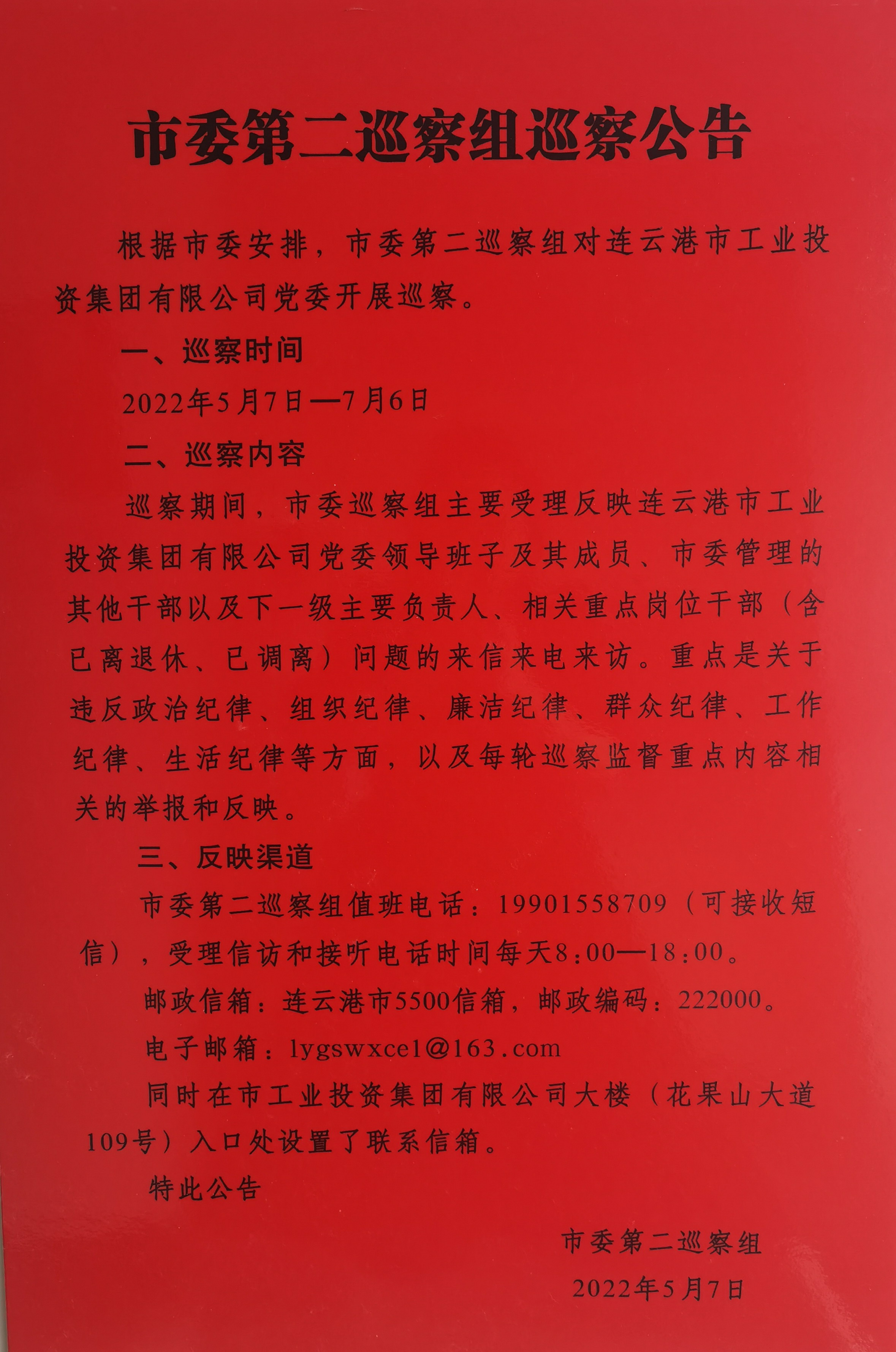 市委第二巡察組巡察公告