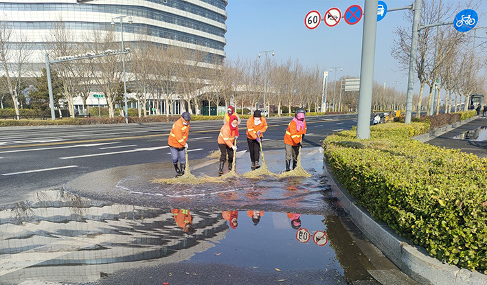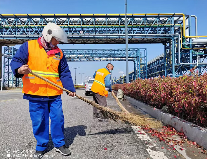 保潔黨員先鋒突擊處理閃亮道路一線