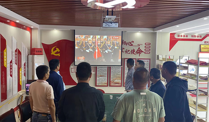 主題黨日活動(dòng)在國(guó)歌中拉開(kāi)了序幕。資產(chǎn)管理中心全體黨員列隊(duì)面向屏幕,觀看天安門廣場(chǎng)升國(guó)旗儀式視頻。