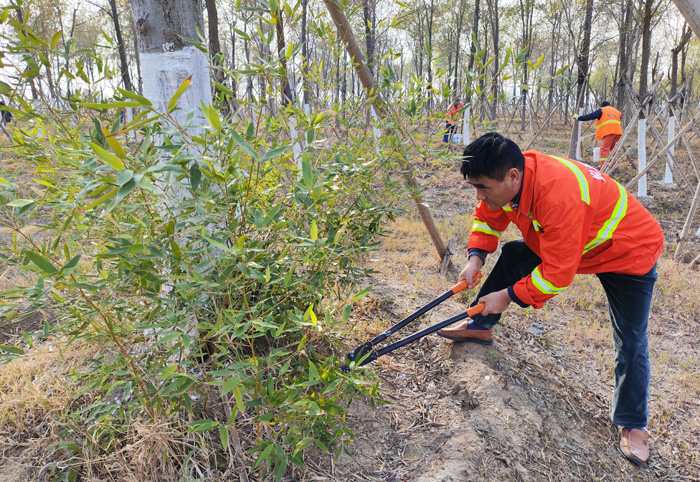 當(dāng)前,為扎實(shí)做好冬季樹木養(yǎng)護(hù)工作,提高樹木的過冬、抗病和抗蟲能力,李傳武帶領(lǐng)班組全員開展樹木涂白行動(dòng),悉心為樹木披上“防寒衣”。為達(dá)到同一標(biāo)準(zhǔn),他采用“立桿涂白法”,首先安排專人進(jìn)行劃線,將行道樹涂白高度統(tǒng)一控制在1.2米,使區(qū)域內(nèi)涂白高度保持一致,確保樹木涂白效果與植物整體美觀,經(jīng)過10天的持續(xù)工作,完成10000余棵行道樹涂白工作(完成工作量約20%)。