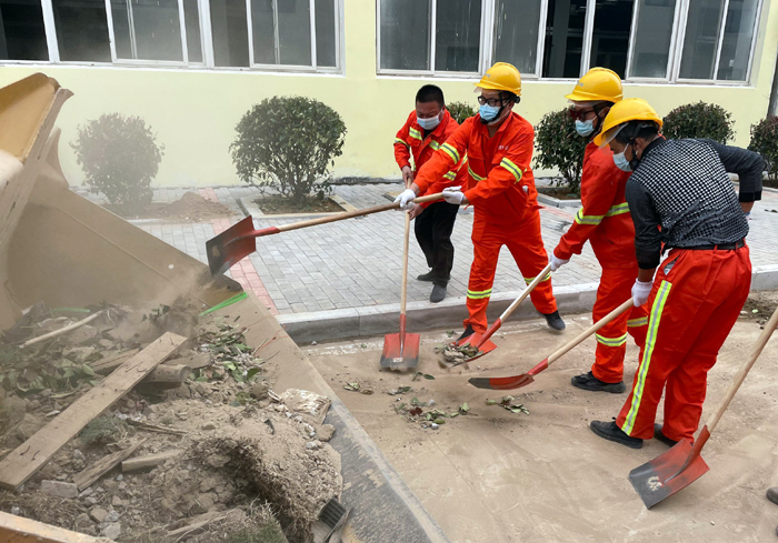 面對(duì)繁重工作量,為了切實(shí)加快施工進(jìn)度,悅升公司黨員干部主動(dòng)請(qǐng)纓要求到一線與大家共同奮戰(zhàn)。“不要急,要嚴(yán)格施工流程,確保工程質(zhì)量達(dá)標(biāo)……”該公司負(fù)責(zé)人馮如師邊說(shuō)邊邊將工程垃圾裝運(yùn)到車(chē)上。截止當(dāng)前,該公司班子成員帶領(lǐng)機(jī)關(guān)工作人員堅(jiān)守陣地,持續(xù)工作了17日。為確保高質(zhì)高效完成各項(xiàng)工程任務(wù),大家“白加黑”晝夜不間斷的全力奮戰(zhàn),已完成瀝青路面攤鋪1.7萬(wàn)m2、園路鋪設(shè)3000m2、路緣石安裝1660m、樹(shù)池圍牙砌筑1136m、更換下水道篦子130塊……各項(xiàng)工程任務(wù)完成接近尾聲。