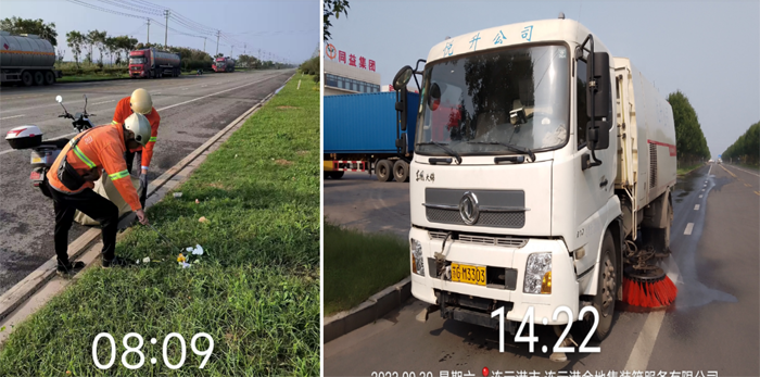 ? ? ? ?提升道路保潔率。出動高壓沖洗車、清掃車、對園區(qū)主次街路開展洗掃除塵、清掃保潔作業(yè),對重點路段祥和路、云港路實行“前高壓、后洗掃”的聯(lián)合編組作業(yè)模式,增加機械清洗頻次,保證道路潔凈度,進一步降低道路含塵量。充分發(fā)揮職業(yè)職能優(yōu)勢,實施“立體化、全覆蓋”的保潔模式,通過人機結合清洗主道和輔道5萬余米,為園區(qū)的靚麗再添新風景。