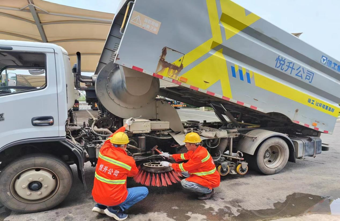 ? ? ? ?連日來,持續(xù)高溫,酷暑難耐。悅升公司車輛維修班組始終堅守崗位,他們用汗水確保公司所有作業(yè)車輛、設備設施正常運行,盡全力保障環(huán)衛(wèi)生產車輛的出勤率,為公司安全生產做好后勤保障工作。