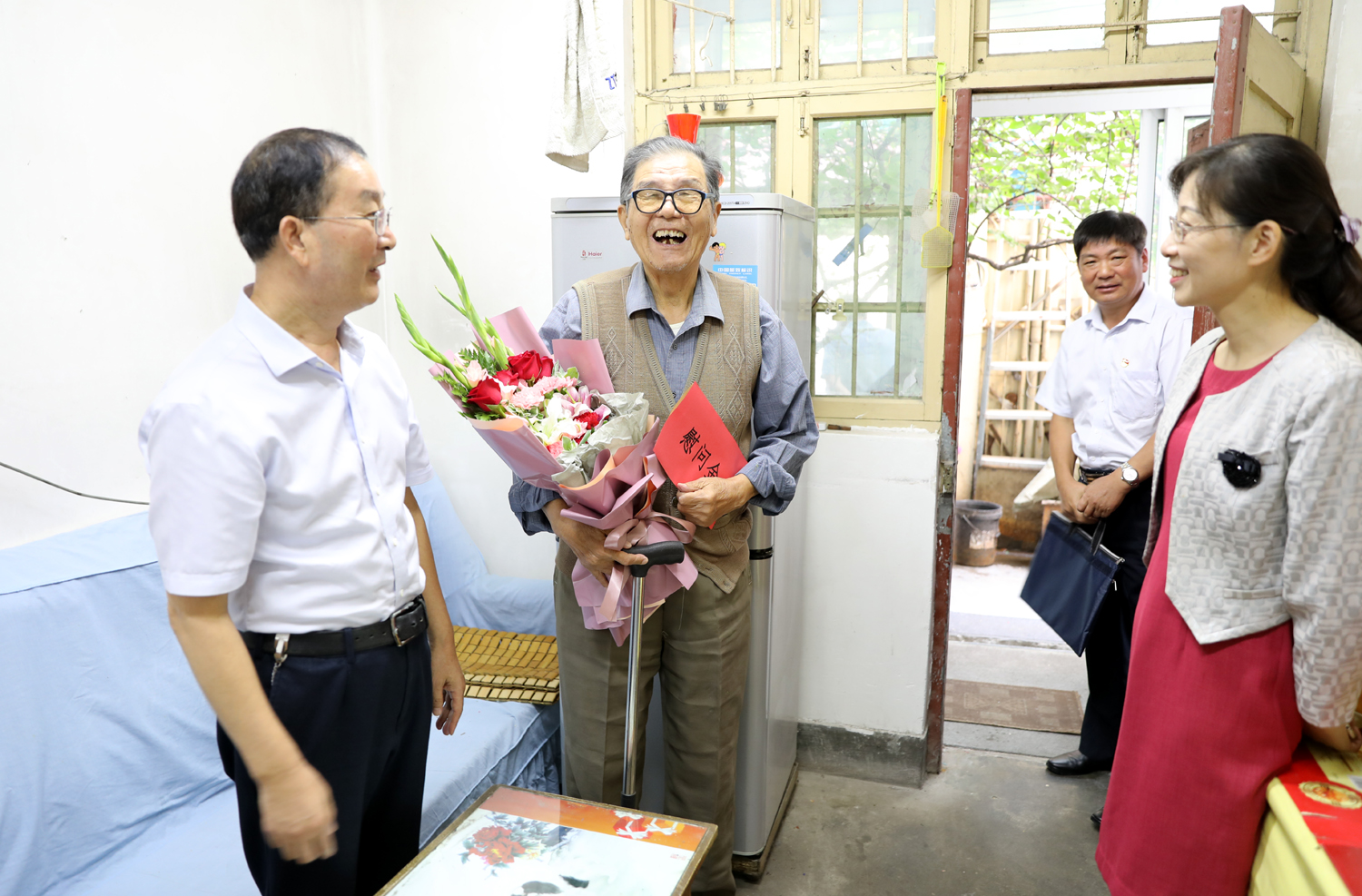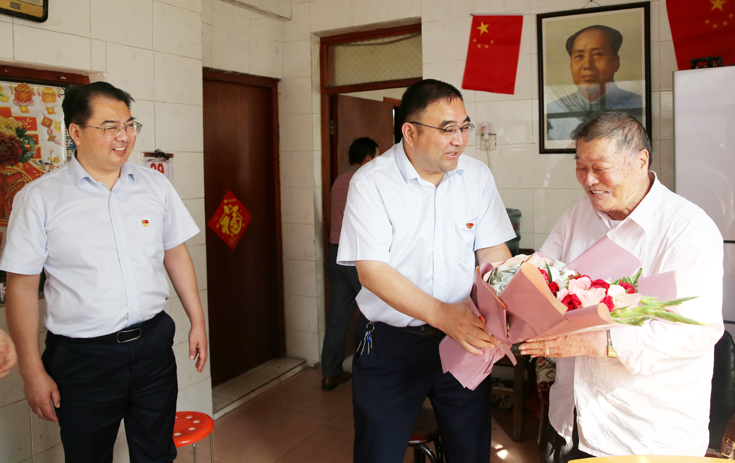 國(guó)慶前夕,929日上午,集團(tuán)公司董事長(zhǎng)、黨委書記楊龍,總經(jīng)理胡建明、黨委副書記戴鴻鳴、紀(jì)委書記汪群等領(lǐng)導(dǎo)分組走訪慰問(wèn)部分建國(guó)前參加工作的老黨員、老干部,為他們送去慰問(wèn)金和鮮花,同慶新中國(guó)七十周歲華誕。
