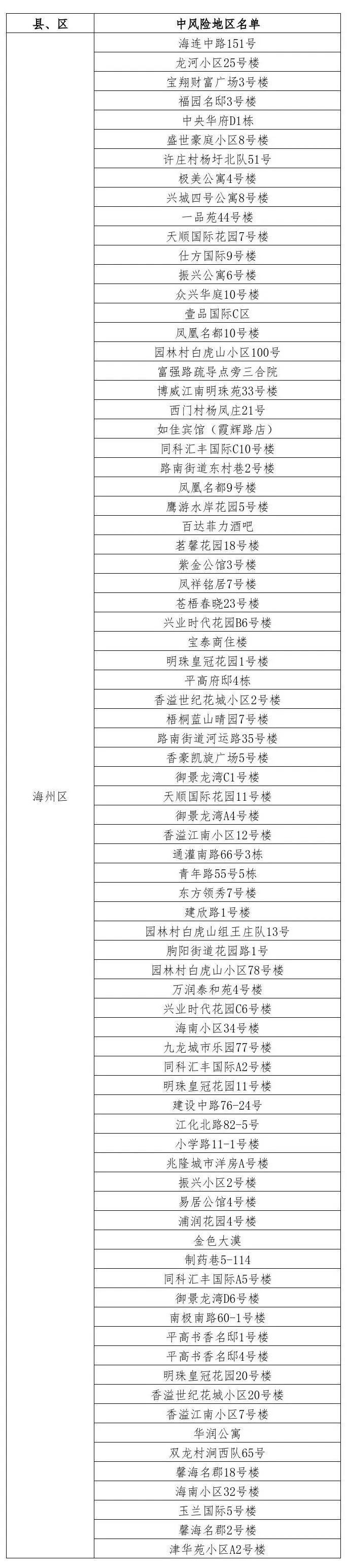 根據(jù)國務院聯(lián)防聯(lián)控機制有關規(guī)定,經(jīng)市指揮部研究決定,自發(fā)布之日起,對我市部分區(qū)域疫情風險等級進行調整:
