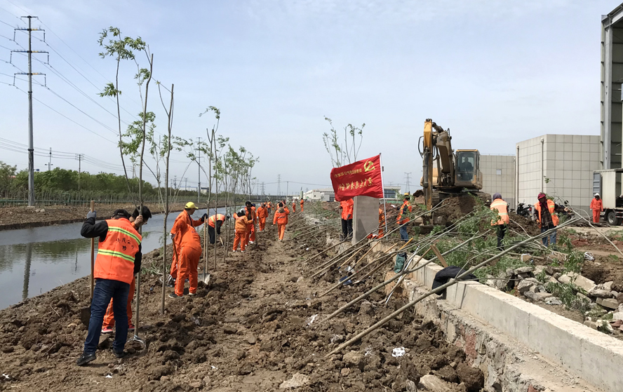427日,鮮紅的黨旗在開(kāi)發(fā)區(qū)開(kāi)泰河的上空高高飄揚(yáng),黑褐色的土地上,處處綻放著“橘黃色的花朵”,那是身著工服的“華茂人”忘我忙碌的身影。為確保開(kāi)泰河綠化景觀(guān)工程項(xiàng)目按期完工,華茂機(jī)關(guān)全體職工、分公司部分職工80余人,主動(dòng)放棄休息日,加入“工程大軍”中,高效助力開(kāi)泰河綠化工程在既定工期內(nèi)順利完工,為創(chuàng)建文明城市增添一份靚麗的色彩。開(kāi)泰河邊人頭攢動(dòng),大家擼起衣袖,拿起鐵鍬,挖坑、運(yùn)苗、栽苗、培土,相互配合,干勁十足。汗水混合著沙土沾滿(mǎn)了頭上、臉上、手套、衣服和鞋子上,卻沒(méi)有一人叫苦叫累。經(jīng)過(guò)大家?jiàn)^力趕工,一天時(shí)間,一顆顆大樹(shù)苗筆直、整齊劃一的“站立”在開(kāi)泰河的兩岸,放眼望去,黑褐色的土地上點(diǎn)點(diǎn)綠意,綻放出了片片生機(jī)。