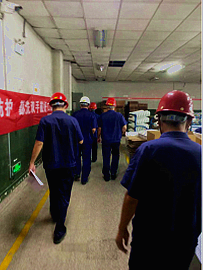 916日,由生產(chǎn)副總張華衛(wèi)帶隊(duì),共12人分兩組對(duì)生產(chǎn)區(qū)進(jìn)行安全大檢查,檢查范圍涵蓋公司所有角落。此次檢查采用專業(yè)人員有針對(duì)性的專項(xiàng)檢查,每位專項(xiàng)檢查人根據(jù)自已的專業(yè)特長,各負(fù)責(zé)一項(xiàng),檢查內(nèi)容涉及用電安全、現(xiàn)場(chǎng)環(huán)境、機(jī)械設(shè)備、勞動(dòng)保護(hù)、消防設(shè)施、作業(yè)安全等。