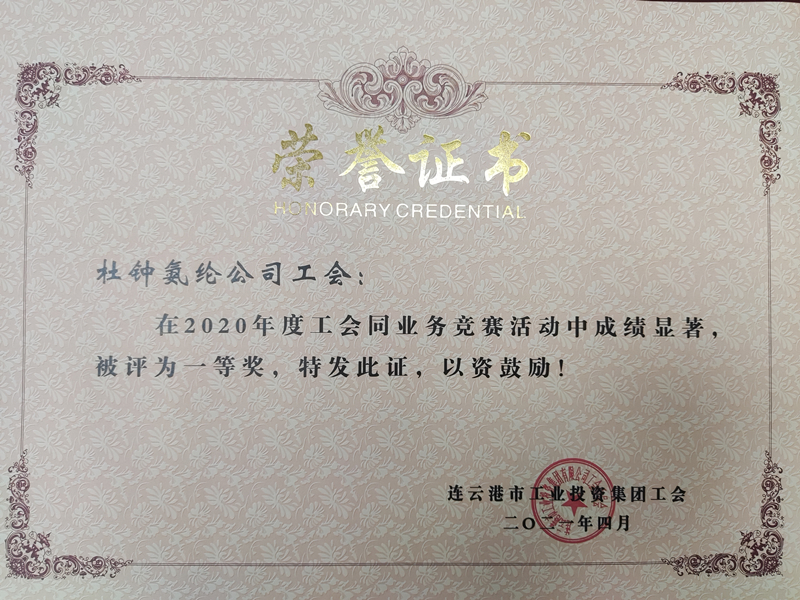 氨綸公司工會(huì)榮獲集團(tuán)2020年度工會(huì)同業(yè)務(wù)競(jìng)賽評(píng)比一等獎(jiǎng)