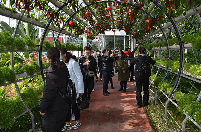 202137日上午八點(diǎn),公司65名女職工們整裝待發(fā),一路歡歌笑語(yǔ)到達(dá)了浦南鎮(zhèn)集瑞園農(nóng)莊,開(kāi)始了西紅柿采摘活動(dòng)。步入采摘基地,在集瑞園門口,眾人紛紛拿好籃子,興沖沖得進(jìn)入了溫暖如春的大棚。滿園的蔬果香氣撲鼻而來(lái),各種品種的西紅柿掛在綠葉叢中,嬌艷欲滴,讓人賞心悅目。離開(kāi)采摘園后,大家到達(dá)智慧農(nóng)業(yè)展示中心,水培、霧培、基質(zhì)培等新種植模式和繽紛的花草盆栽引來(lái)大家的駐足觀賞。