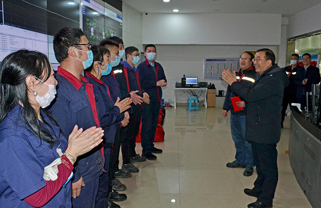 “過(guò)年了,你們還堅(jiān)守在第一線,大家辛苦了。”2月12日,大年初一一早,陽(yáng)光明媚,集團(tuán)公司總經(jīng)理胡建明一行在公司總經(jīng)理張斌的陪同下來(lái)我公司,對(duì)春節(jié)期間堅(jiān)守一線的員工們送上新年祝福和慰問(wèn)品。