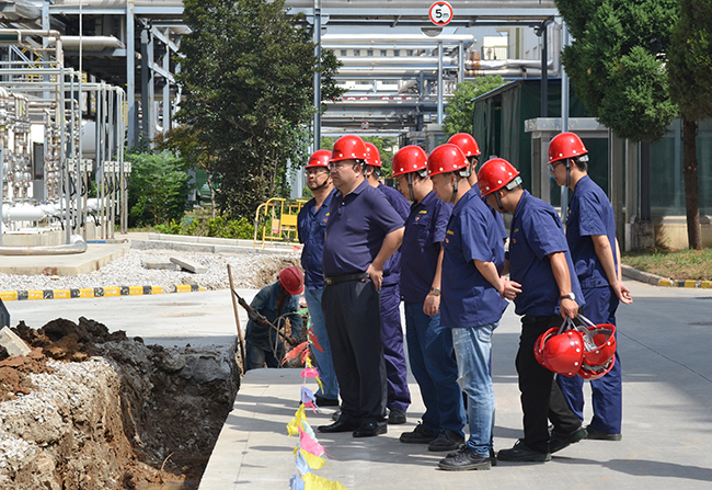 楊董事長深入一線實地察看了氨綸公司施工現(xiàn)場、生產(chǎn)車間、精制罐區(qū)、危廢庫等,詳細詢問了氨綸公司安全、消防、監(jiān)控設施的運行情況。楊董事長在檢查中強調:近期,從中央到地方對安全生產(chǎn)工作的要求提升到了一個新的高度,大家務必要進一步提高安全生產(chǎn)意識,完善安全檢查制度、落實隱患整改。一定要切實加強安全培訓,利用班前早會鞏固安全規(guī)范、嚴守勞動紀律。強化日常安全管理,認真落實好節(jié)日期間應急管理和值班制度,對設備進行全面檢查維護,通過扎實有效的舉措確保節(jié)日期間安全生產(chǎn)平穩(wěn)運行。