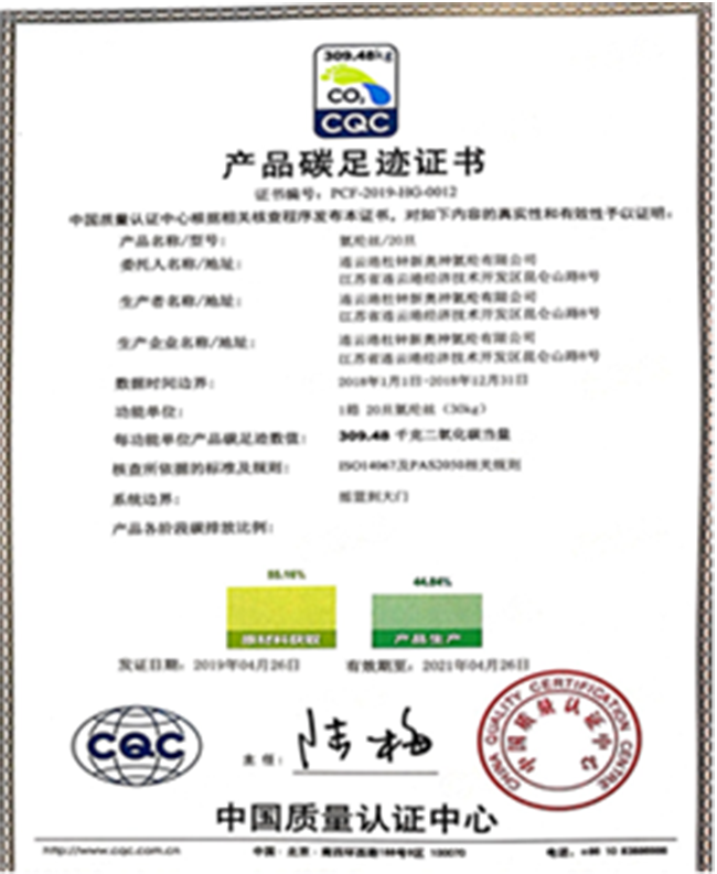 2019年,公司順利通過了碳排查,獲得了由中國質(zhì)量認證中心發(fā)放20D氨綸纖維的的足跡證書。