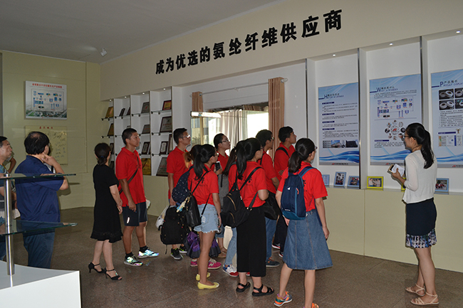 201787日,東華大學(xué)10位研究生赴氨綸公司開展為期2天的暑期調(diào)研,公司總經(jīng)理張斌接待了研究生調(diào)研組,帶領(lǐng)學(xué)子們參觀了展廳、生產(chǎn)車間、研發(fā)中心。座談會上,張總對公司的發(fā)展歷程、公司的生產(chǎn)情況、公司差別化產(chǎn)品的優(yōu)勢進行了介紹,大家就彈性纖維的發(fā)展現(xiàn)狀、發(fā)展前景開展了深入交流。