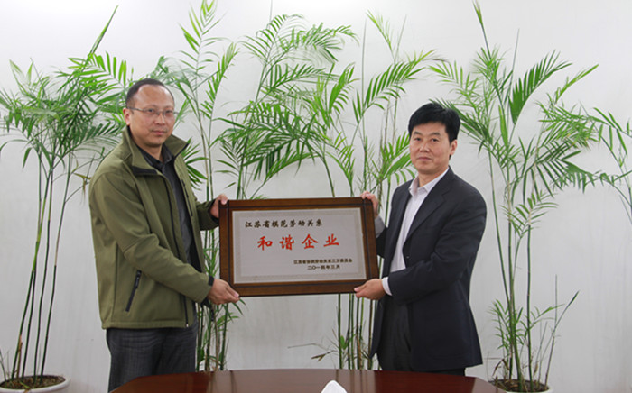 日前,江蘇省模范勞動(dòng)關(guān)系三方委員會辦公室印發(fā)《關(guān)于表彰江蘇省模范勞動(dòng)關(guān)系和諧企業(yè)與工業(yè)園區(qū)的決定》(蘇協(xié)勞【2014】2號),授予公司“江蘇省模范勞動(dòng)關(guān)系和諧企業(yè)”稱號。