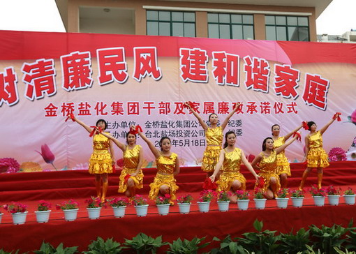 518下午,集團(tuán)公司在臺(tái)北鹽場(chǎng)投資公司舉行黨員干部及家屬“樹(shù)清廉民風(fēng),建和諧家庭”廉政承諾儀式,并進(jìn)行了贈(zèng)書(shū)儀式和豐富多彩的文藝演出。在文藝演出中,我公司職工自編自演的快板《廉政準(zhǔn)則送清風(fēng)》、女聲獨(dú)唱《守住清廉》、合作節(jié)目詩(shī)朗誦《清廉暢想》受到了觀看演出的各級(jí)領(lǐng)導(dǎo)和職工群眾的一致好評(píng)。(司宣 司紀(jì))